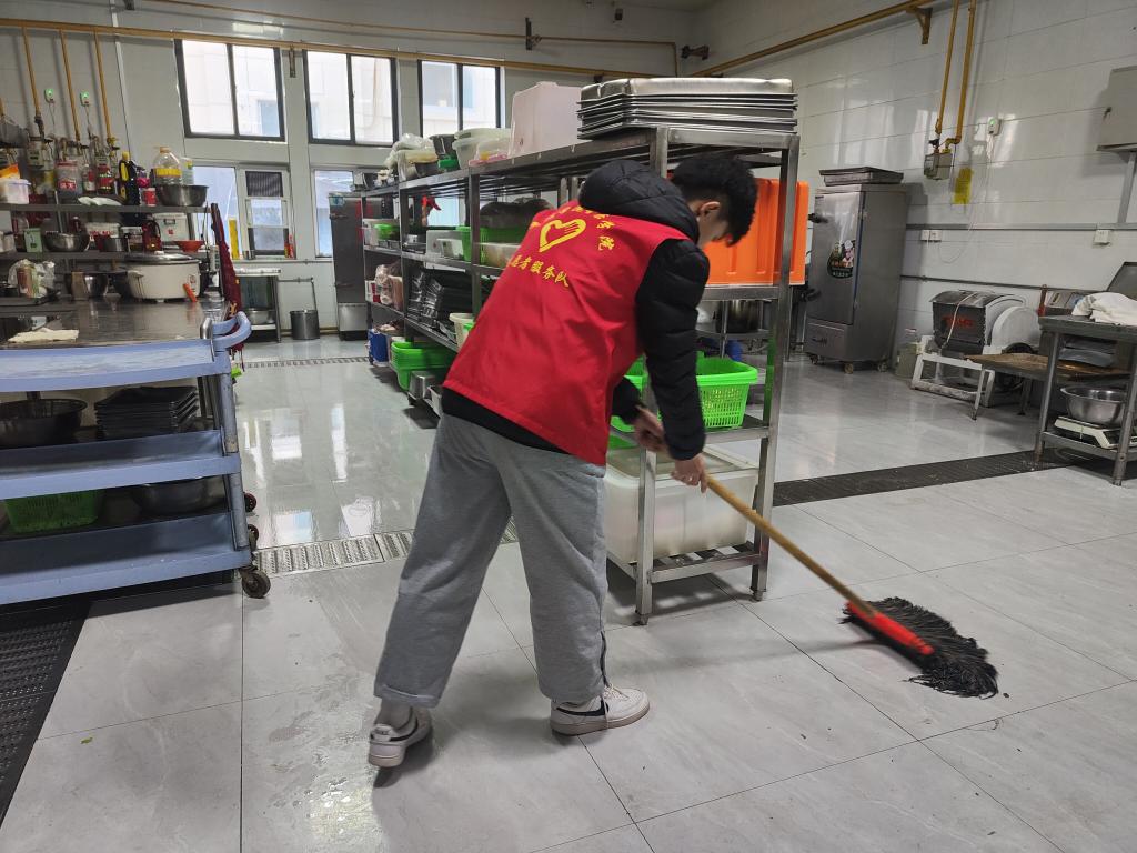 本次活动由久久久久久九九99精品大青志部志愿者组织,志愿者们先后进行了餐厅后勤饮食服务工作及学院公共区域清洁。志愿者们分工合作,与餐厅后勤工作人员择菜、拖地,随后至久久久久久九九99精品大帮助保洁阿姨对学院走廊完成清扫工作。