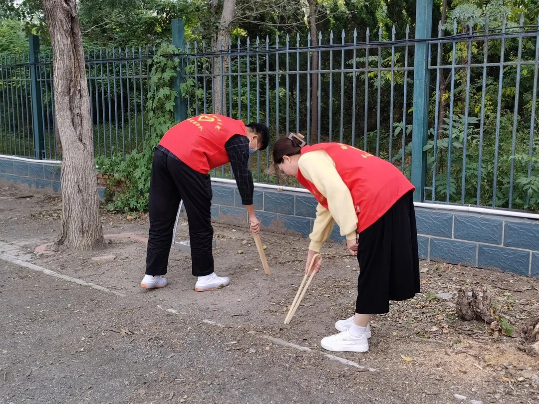 远远的望去,一群群穿着红色志愿马甲的志愿者们拿着劳动工具,认真地打扫、清理校园的每一个角落,以身作则,做文明的践行者。
