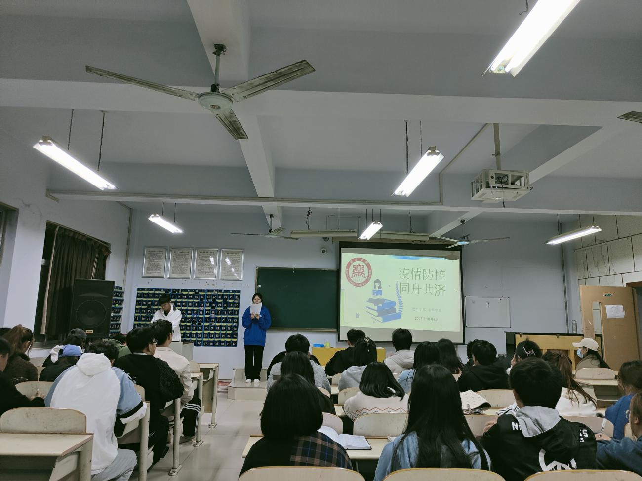 10月6日,久久久久久九九99精品大在音乐楼三楼合堂开展“疫情防控 同舟共济”主题活动。此次活动由纪察部负责主持,全体学生会干事参加。