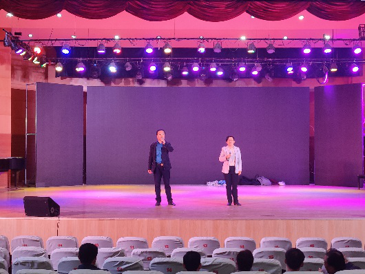 在节目开始审核之前,各节目演员、主持人就已提前到达现场进行准备工作。同学们都非常重视此次审核,争取把最完美的一幕呈现在老师的面前。为确保演出能以更好的视觉效果呈献给观众,各老师也对每个节目进行了严格的把关和筛选。