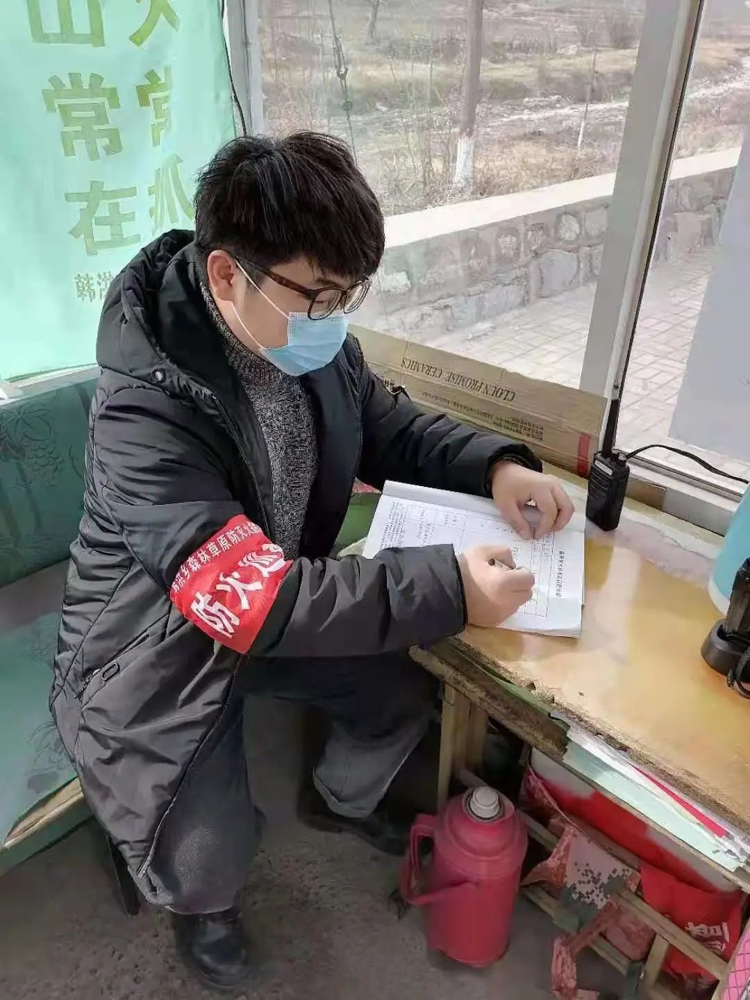 他在山西省沁源县旭河村做疫情防控志愿者,作为入党积极分子的他,自愿报名参加所在村庄防疫检测站的执勤志愿者。他在防疫志愿服务中的工作是:为出入人员测量体温并做好登记,同时对进村的人员进行森林防火检查,为疫情防控出一份力。