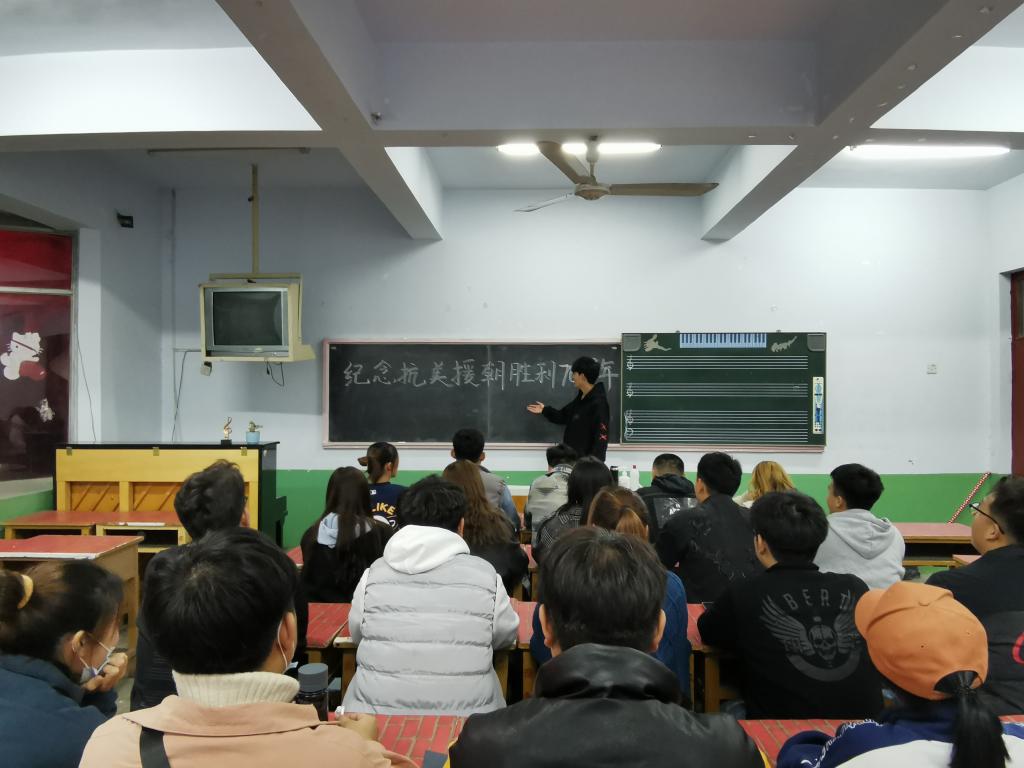 随后,同学们以如何弘扬抗美援朝精神为题展开了激烈的讨论,大家纷纷表示,作为新时代青年,应珍惜幸福和平的生活,努力学习,全面发展,要继续发扬抗美援朝精神,敢于克服困难,直面挑战,不怕牺牲,奋勇向前,为实现中华民族伟大复兴的中国梦而不懈奋斗。