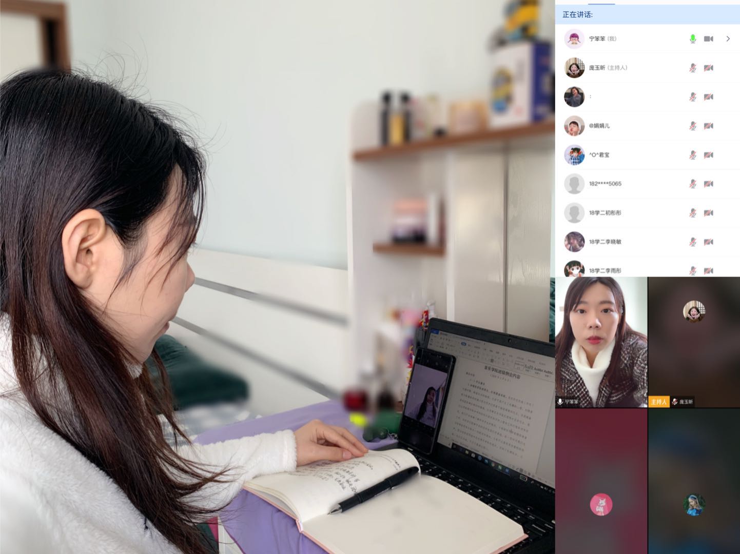 每周一次的“云班会”实现了班主任与学生的“零距离”交流,传递着学院教师对学生的浓浓关怀,指导了学生宅家的学习与生活,帮助学生明确了疫情防控期间的纪律,进一步增强了全员抗“疫”的必胜信念和力量。