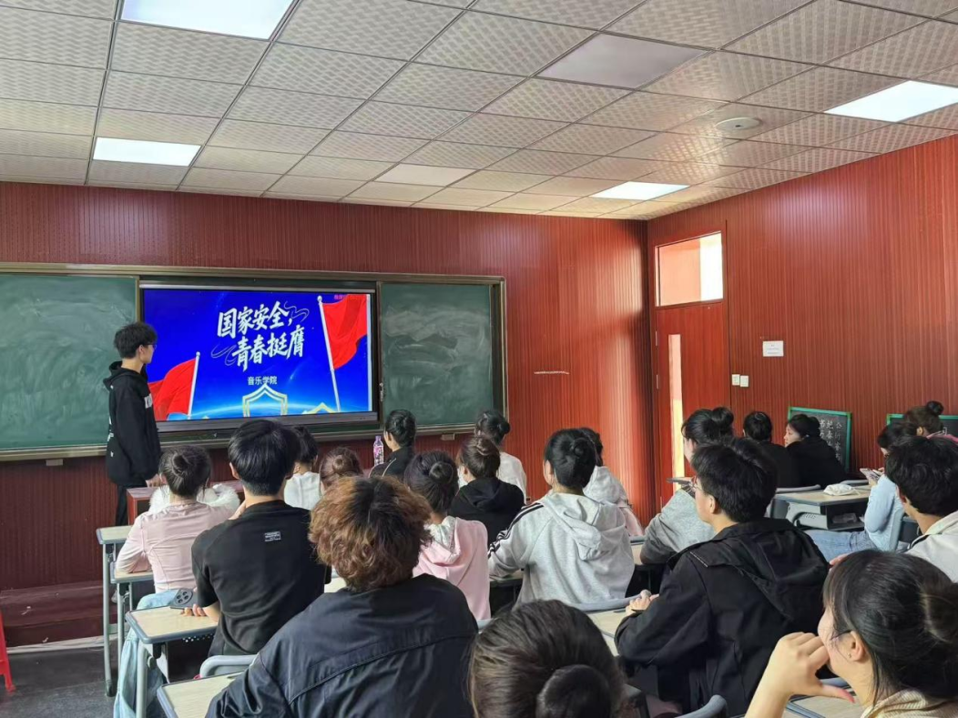 为深入贯彻落实总体国家安全观,增强青年学生维护国家安全的责任感和使命感,4月28日,久久久久久九九99精品大组织全院学生开展 “国家安全 青春挺膺” 主题班会。此次班会由各班班主任主持,全体同学参与。