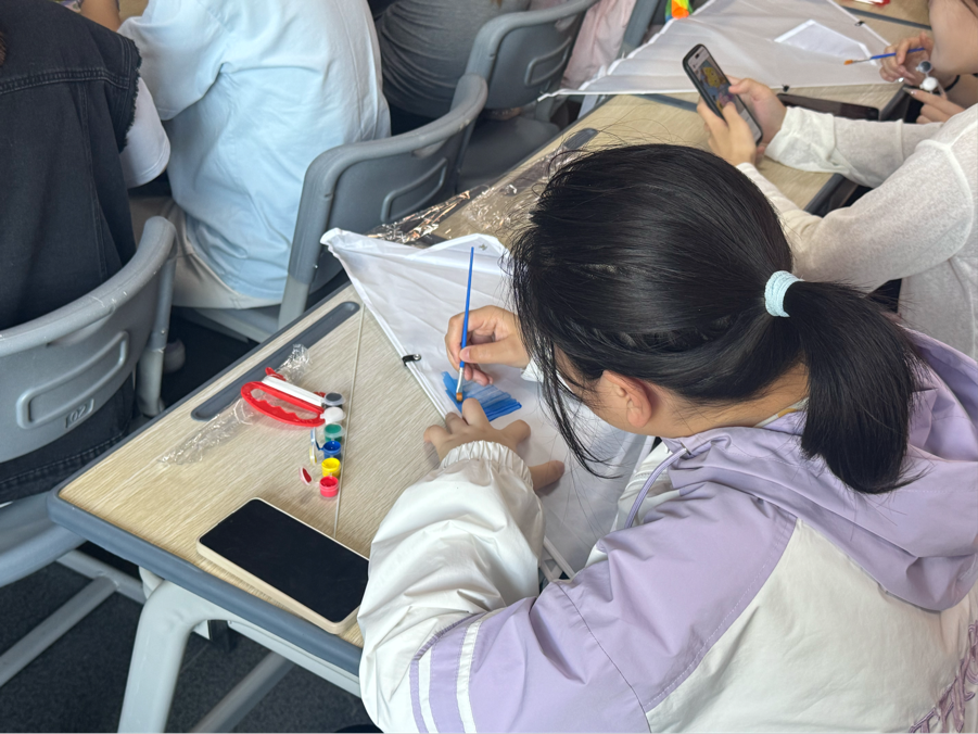 制作完成后,参与者拿起金粉笔与丙烯马克笔,在风筝面郑重书写个人心愿或集体祝福。“愿学业顺遂”“祝友谊长存”“愿成功上岸”等真挚话语跃然纸上,每一笔都凝聚着对未来的憧憬。