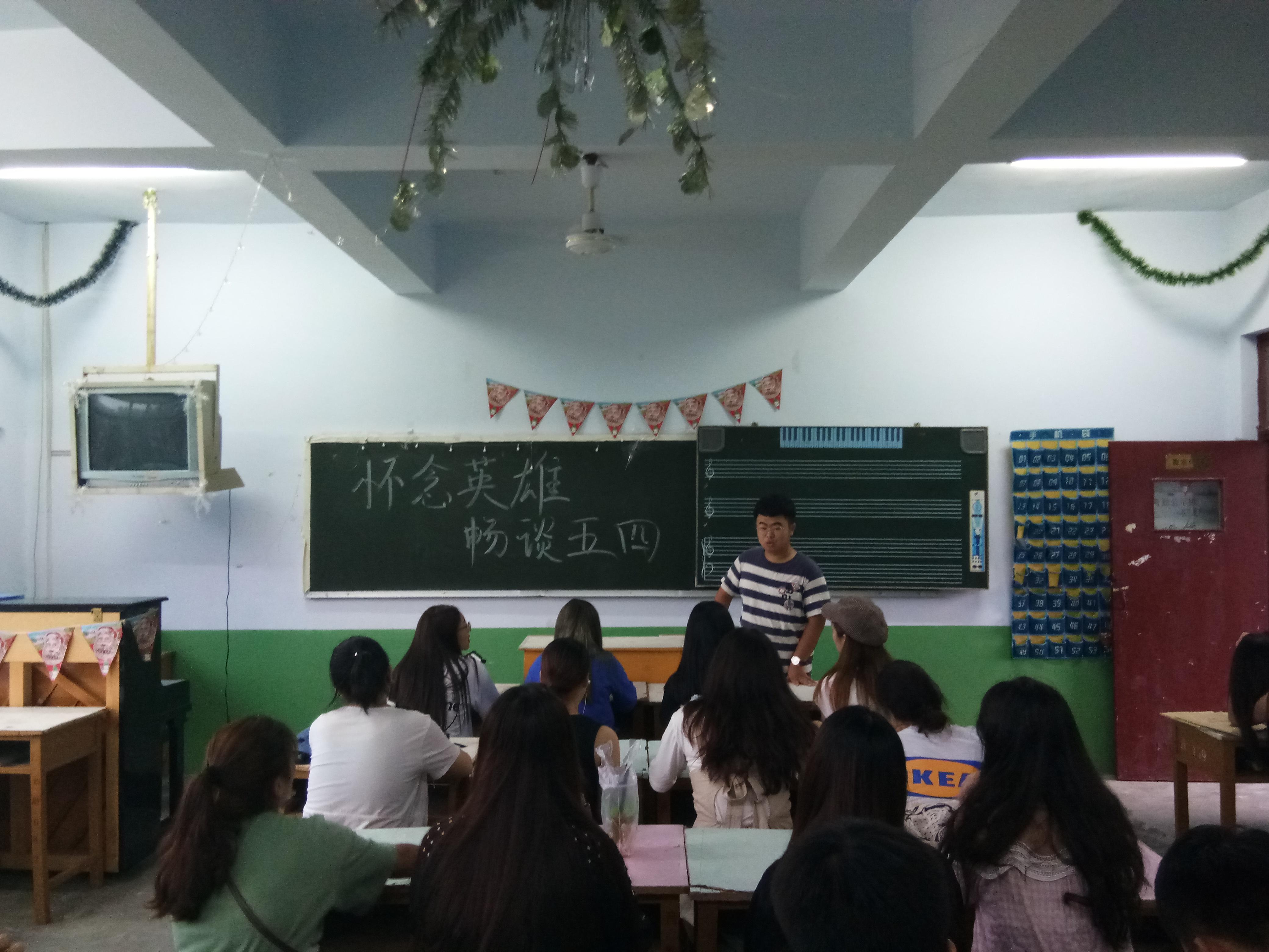 随后,班长简要介绍了抗日战争时期的英雄事迹以及五四运动时的一些故事,将此次活动推向一股热潮,同学们十分感慨。