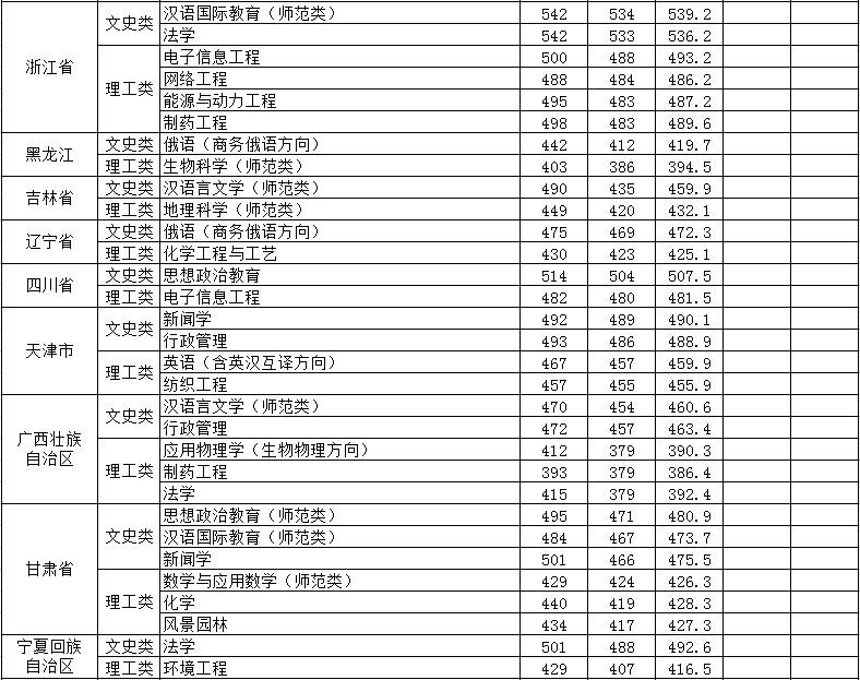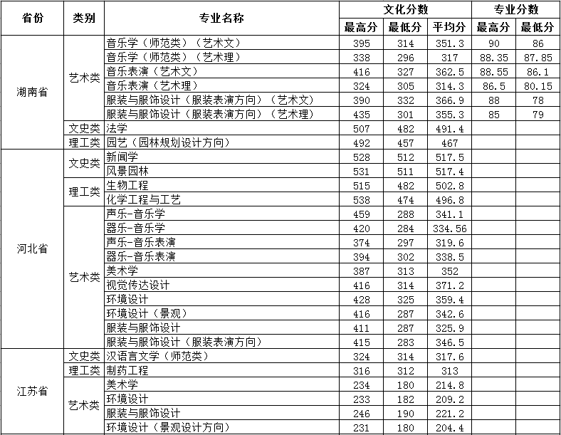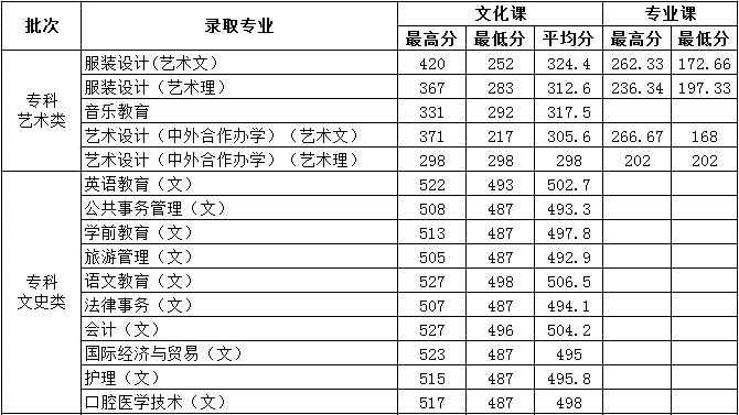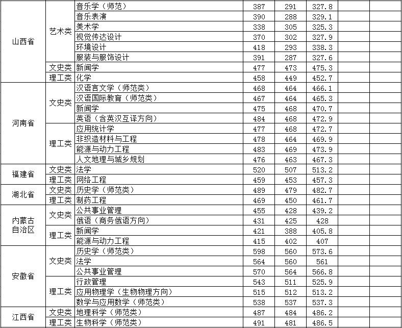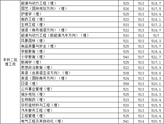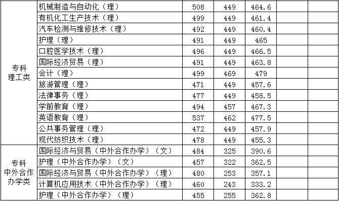 2015年校企合作本科文史、理工类各专业录取分数统计表