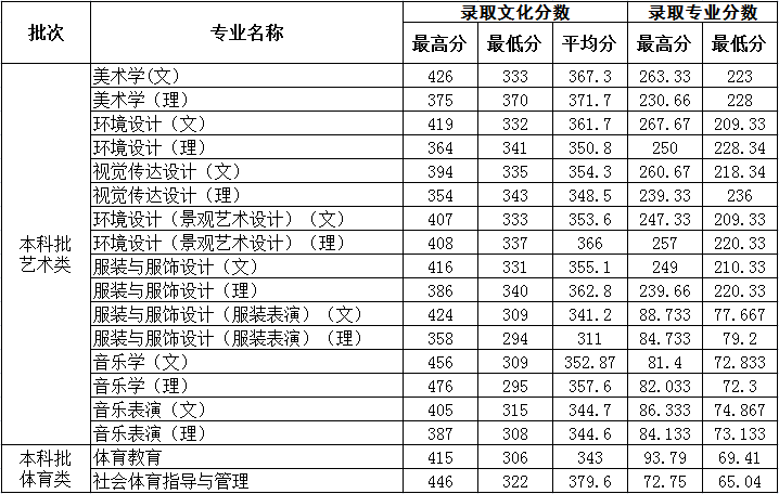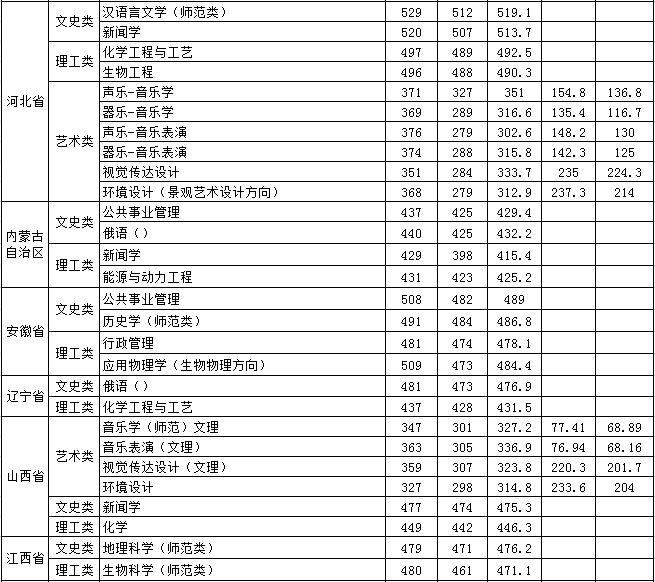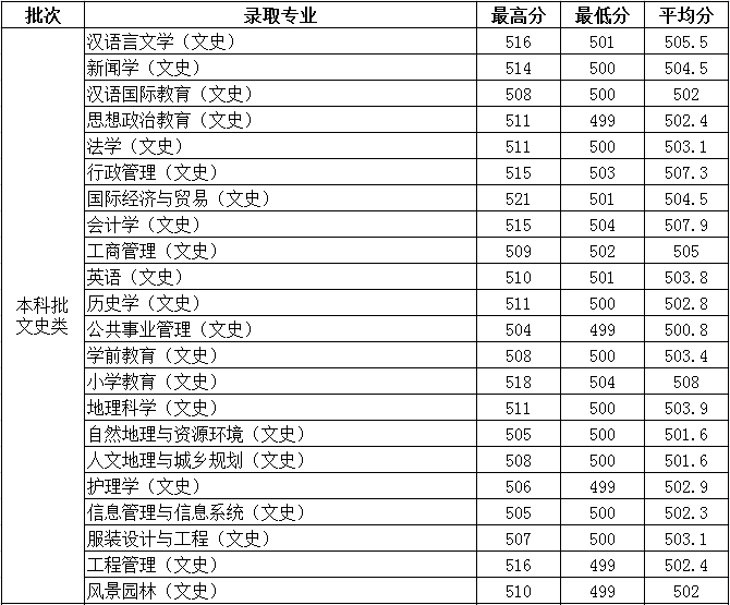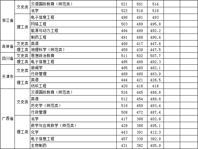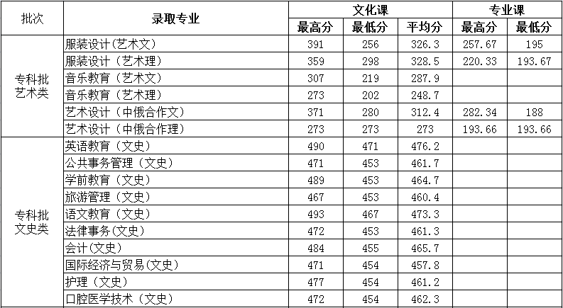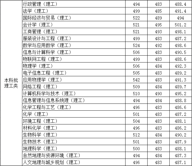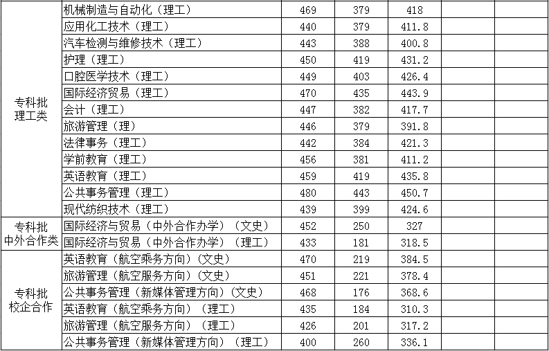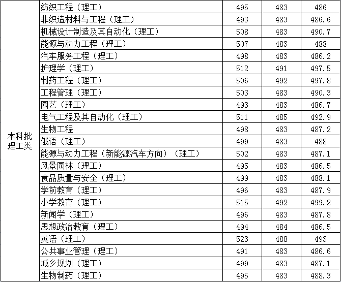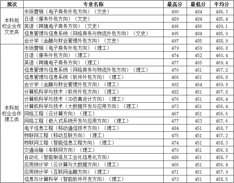 2016年校企合作本科文史、理工类各专业录取分数统计表