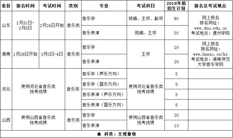 二、2018年音乐类招生专业考试报考须知(山东省考生)