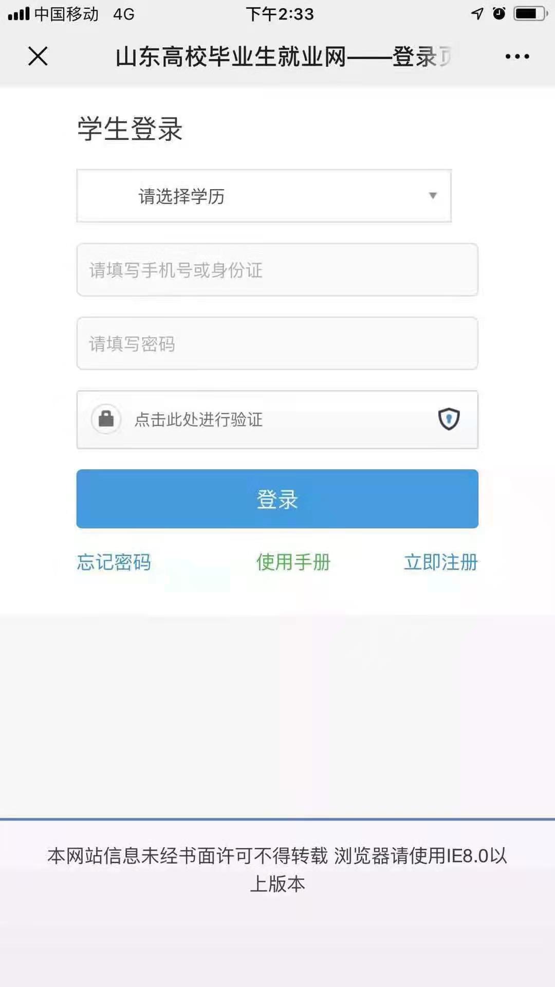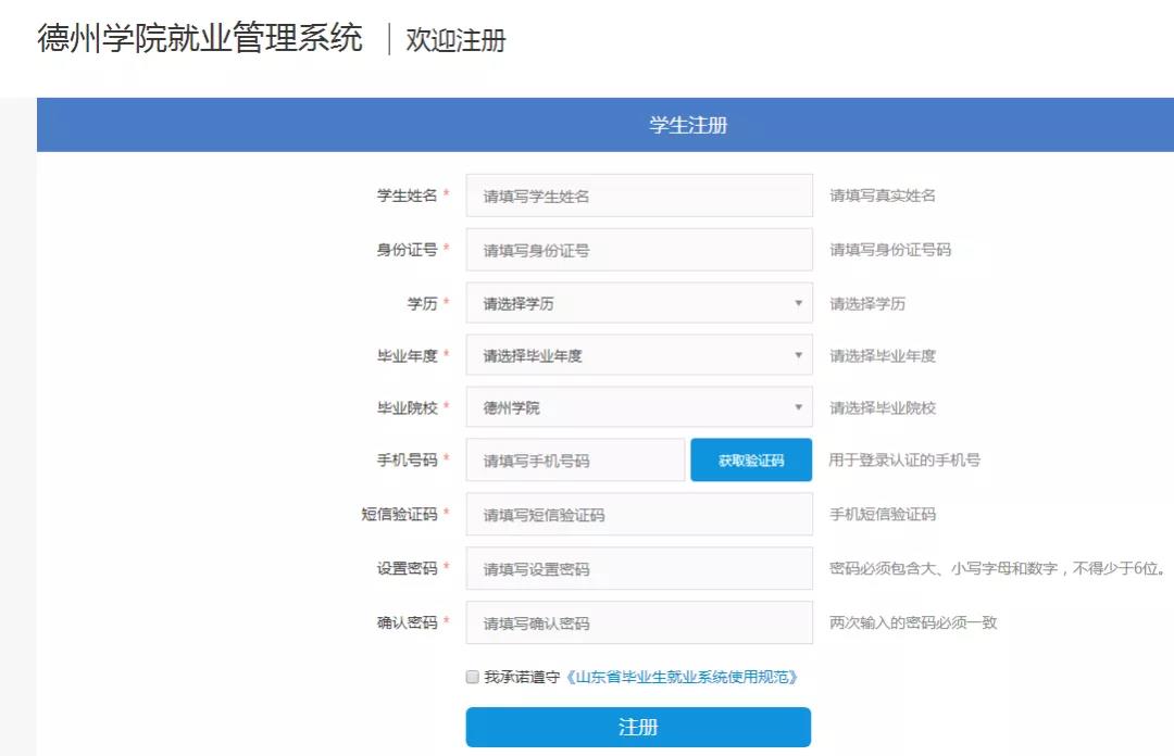(一)通过“德州学院就业管理系统”进行注册(请使用IE或谷歌浏览器登录)