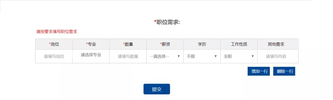 单位报名需填写简历投递邮箱、招聘部门电话还有招聘岗位等需求。