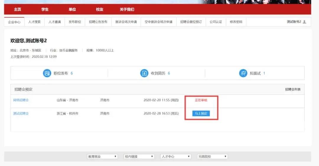 单位报名成功并且学校管理员审核通过之后,单位可以维护网络招聘会简历接收的数据。