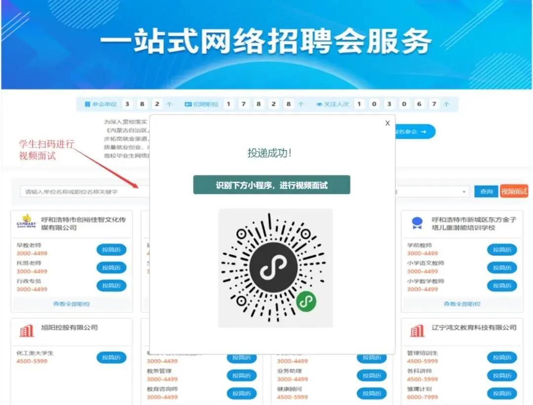 学生手机扫码登录视频小程序,按向导完成视频面试。