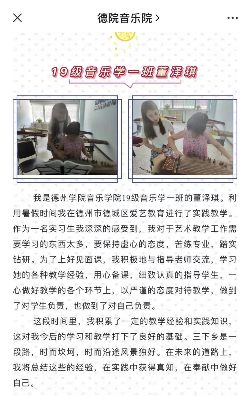 在学院的引导和组织下,音乐学子积极投身“青鸟计划”,并奔赴各地实习学校开展为期4个月的实习支教工作,在支教实践中锻炼、提升自己,努力承担起教书育人的重任。在此之前,久久久久久九九99精品大还积极响应“青鸟计划”暑期实习的号召 ,让同学们走进家乡,了解家乡,服务基层,脚踏实地,将所学理论付诸实践,在实践中获得真知,用青春奋斗书写出实践服务的绚丽篇章。