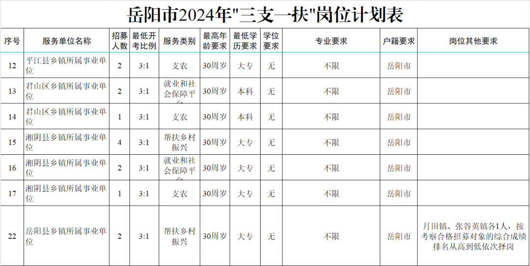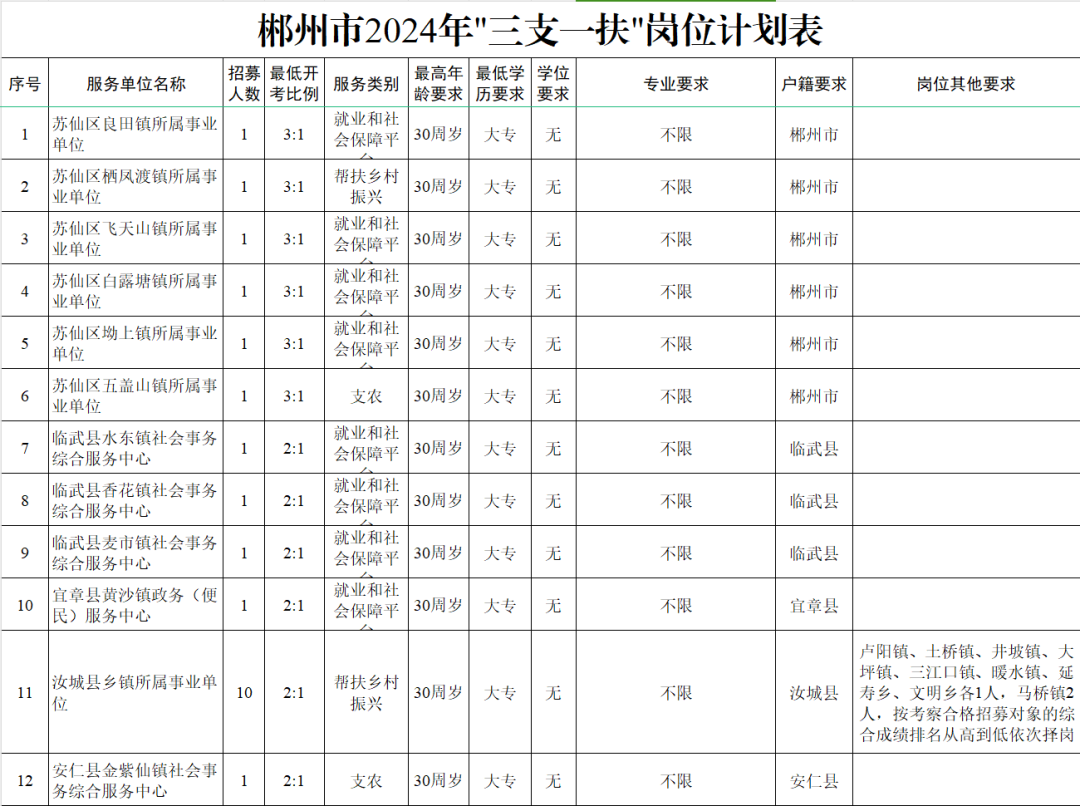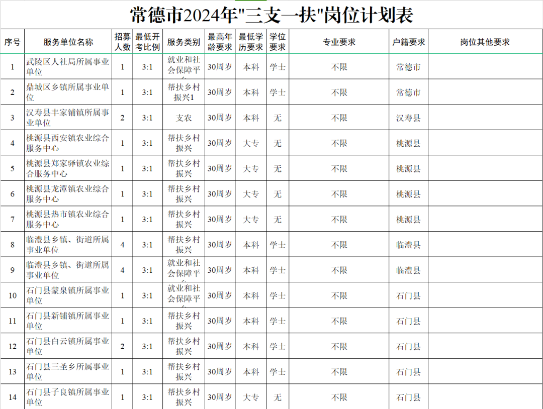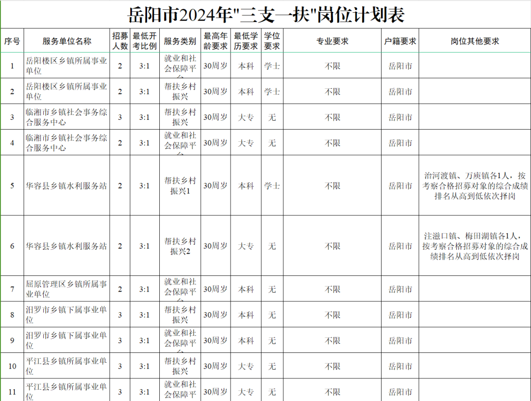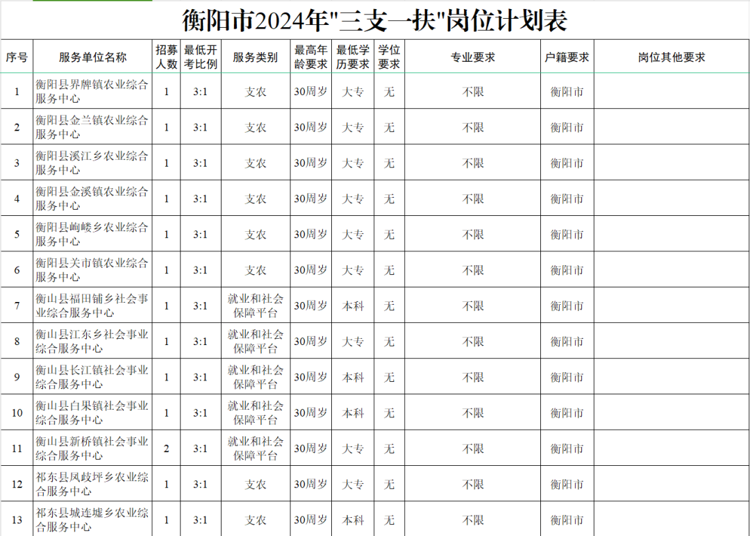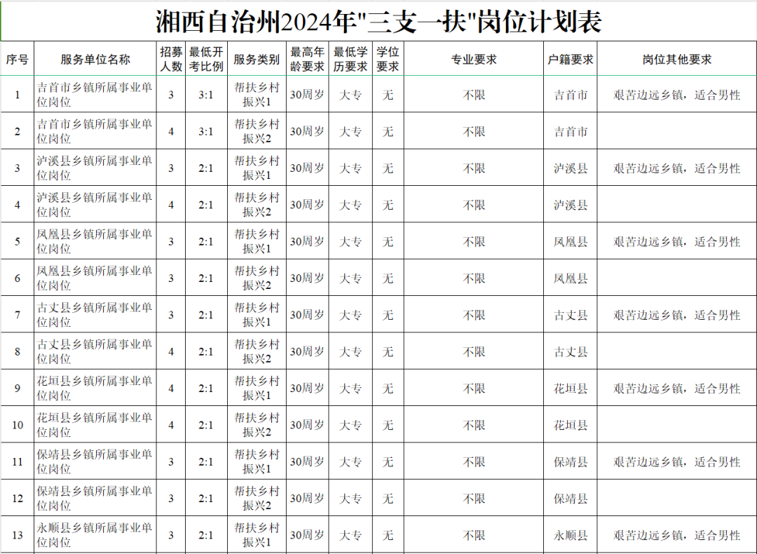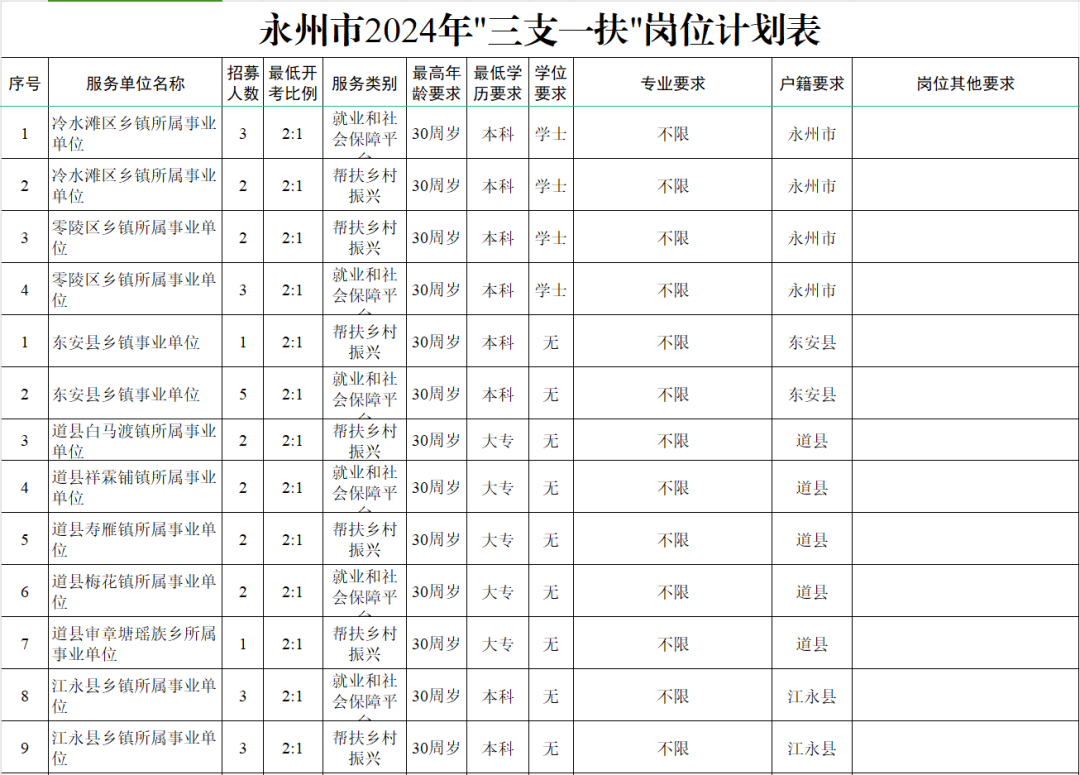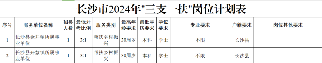 (三)开考比例 笔试开考比例以《湖南省2024年“三支一扶”岗位计划一览表》(附件1)为准。
