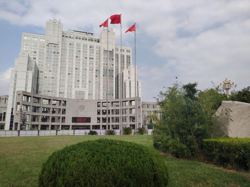 前行至厚德广场,鲜红的国旗与德州学院校旗在国旗台三根21米高的旗杆顶端迎风招展,与巍然耸立的厚德楼一起带给人宏伟辽阔之感。