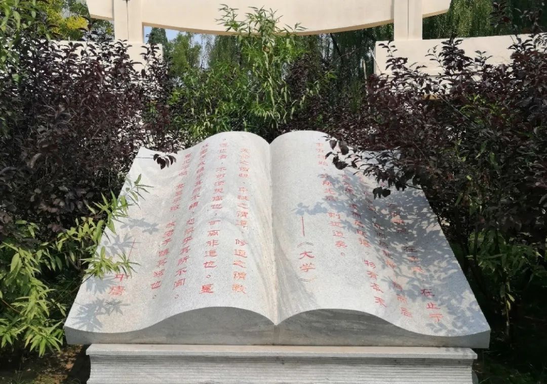 博弈园内有一座刻有《大学》、《中庸》选段的书状石雕。大学之道,中庸之道,镌刻于石书,铭记在心里。
