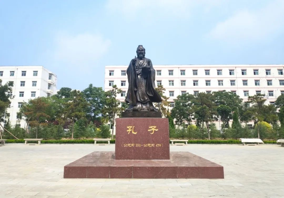 儒风广场,分南北两部分北侧广场中心放置孔子立像,南侧广场中心放置董仲舒坐像,两位儒家文化的代表人物展现在青年学子面前,有利于传统文化的传承、发展与创新。