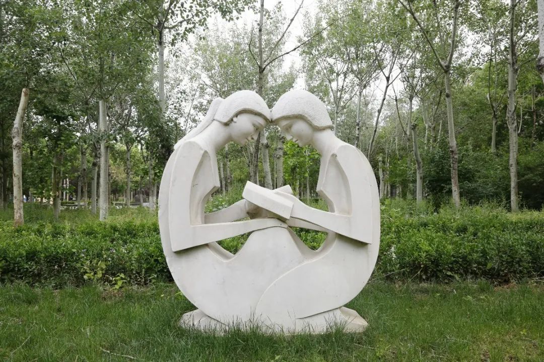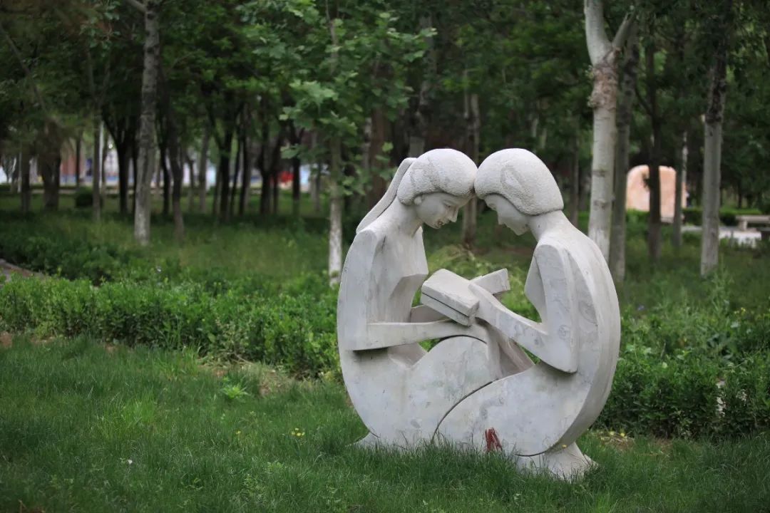 沿着校友林东去,你可以看到几位读书者的雕塑。