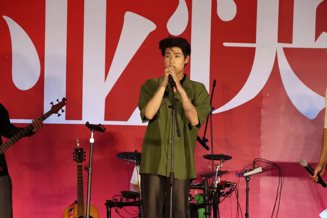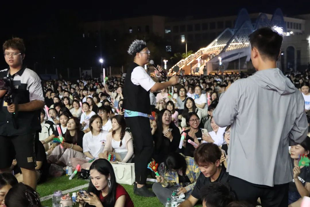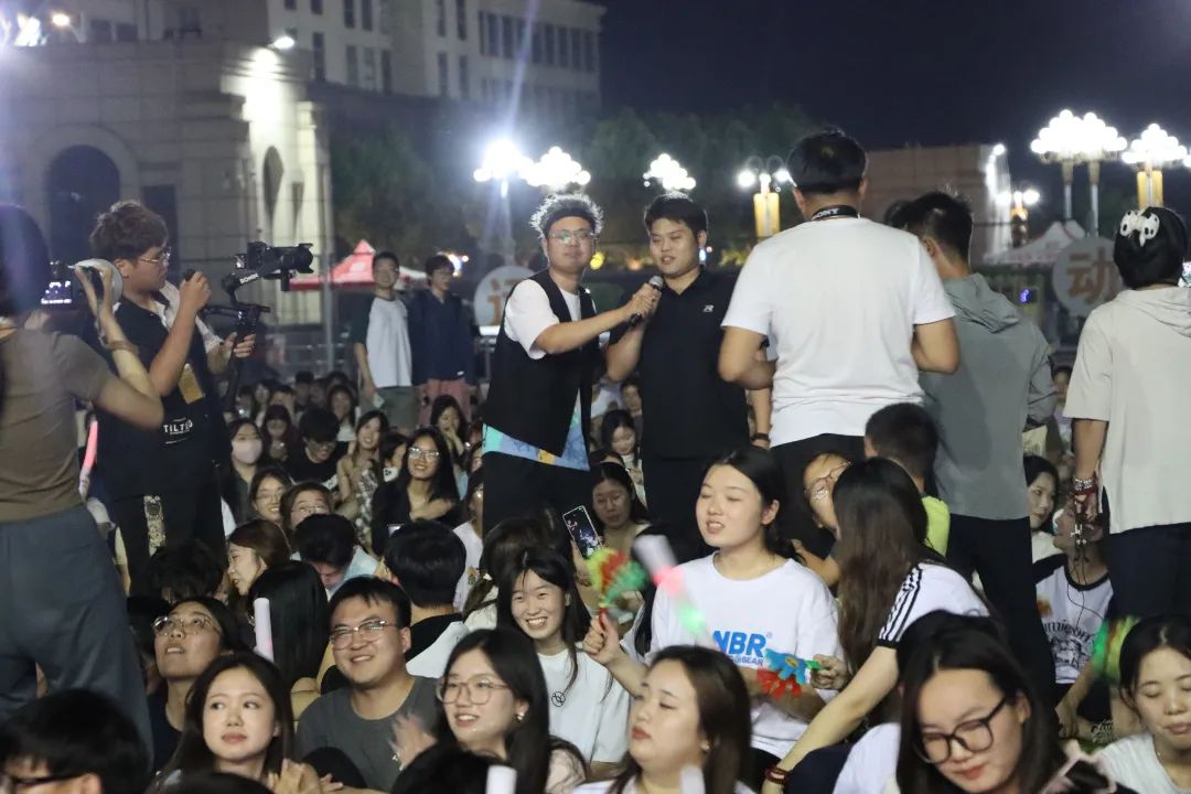 随后,主持人采用现场猜歌送小礼物的方式去点燃大家的激情,大家热情高涨,很多同学积极参与,带来了不少充满热情的演唱,不仅如此,在下半场的音乐会过程中,“双子星”乐队还带来了《鲜花》、原创歌曲《花火》。台上演唱奔放热烈、台下欢呼此起彼伏,歌会现场热情高涨、气氛热烈。随后,主持人随机邀请现场的同学上台演唱,大家热情满满,带来了令人眼前一亮的歌曲。