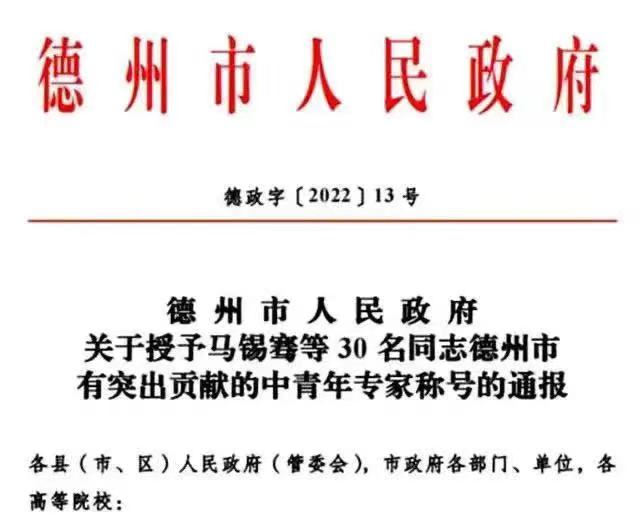 喜报!德州学院久久久久久九九99精品大马锡骞老师入选德州市有突出贡献的中青年专家
