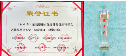 2022年9月21日,德州市首届优秀科普资源颁奖仪式暨科普文艺作品展演活动在齐河文化中心举行,我院李琛老师的原创歌曲《红船颂》荣获文艺作品类优秀奖。