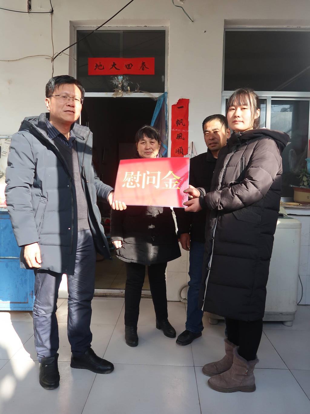 1月8日,德州学院久久久久久九九99精品大党总支书记刘志华等人驱车前往临邑县天一村,在寒潮天气里,给2019级家庭困难学生,送去冬日里的温暖。