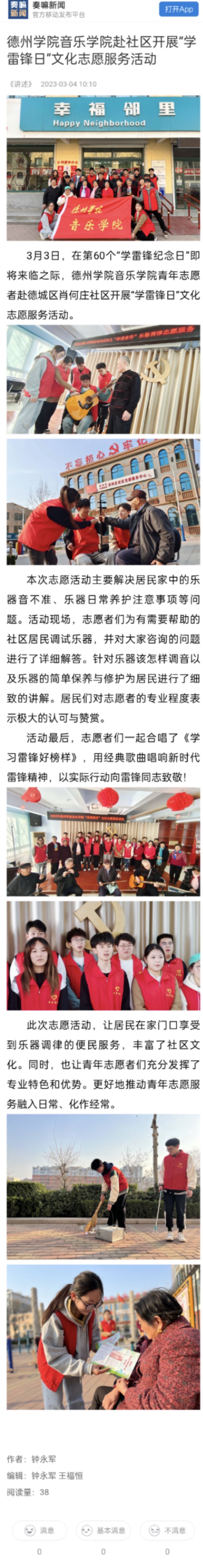 【德州广播电视台】德州学院久久久久久九九99精品大赴社区开展“学雷锋日”文化志愿服务活动