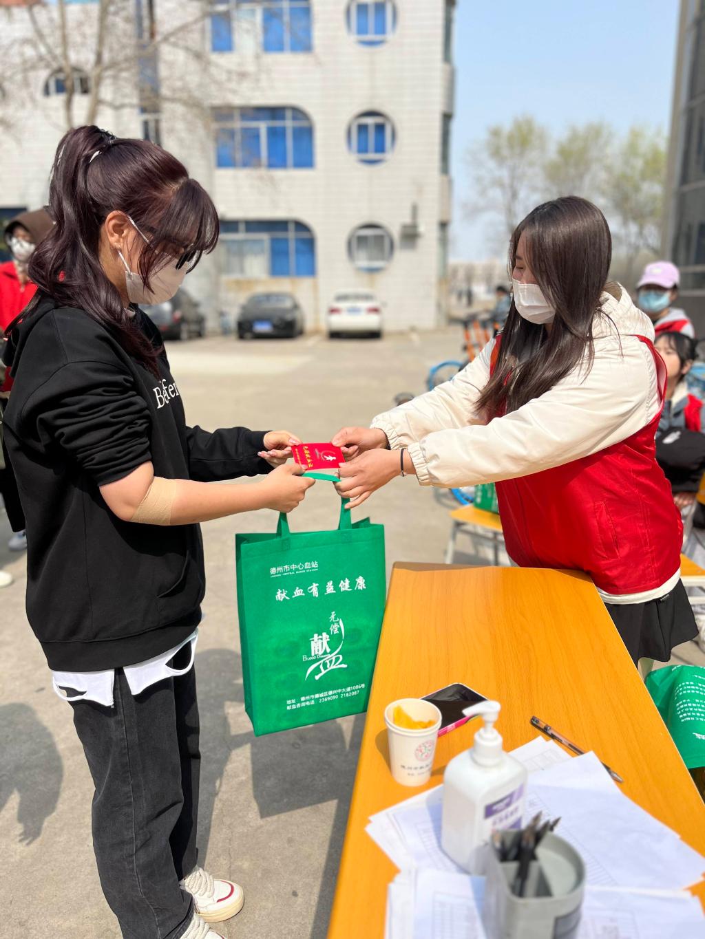 为保障献血工作有序开展,更好的为献血同学提供服务,久久久久久九九99精品大青年志愿者组成服务队。他们维持秩序,暖心指引,为献血同学递上温水,帮助大家喷洒酒精并分发纪念品。