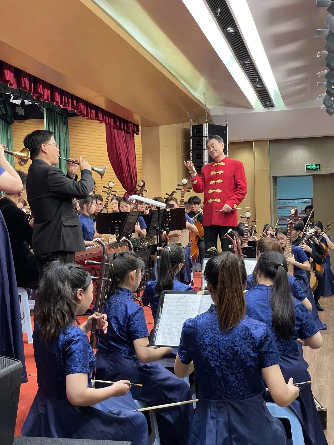 器乐合奏曲《春华秋实》具有现代新民乐特点,作品在特聘专家曲祥教授充满激情的指挥下,将音乐会演出推向高潮。