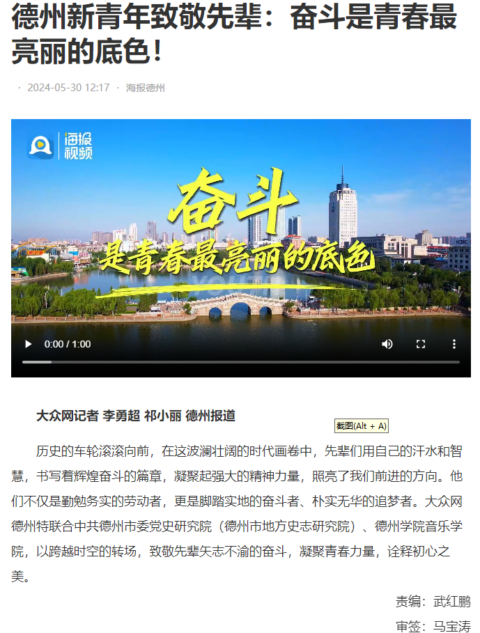 【海报新闻】德州新青年致敬先辈:奋斗是青春最亮丽的底色!
