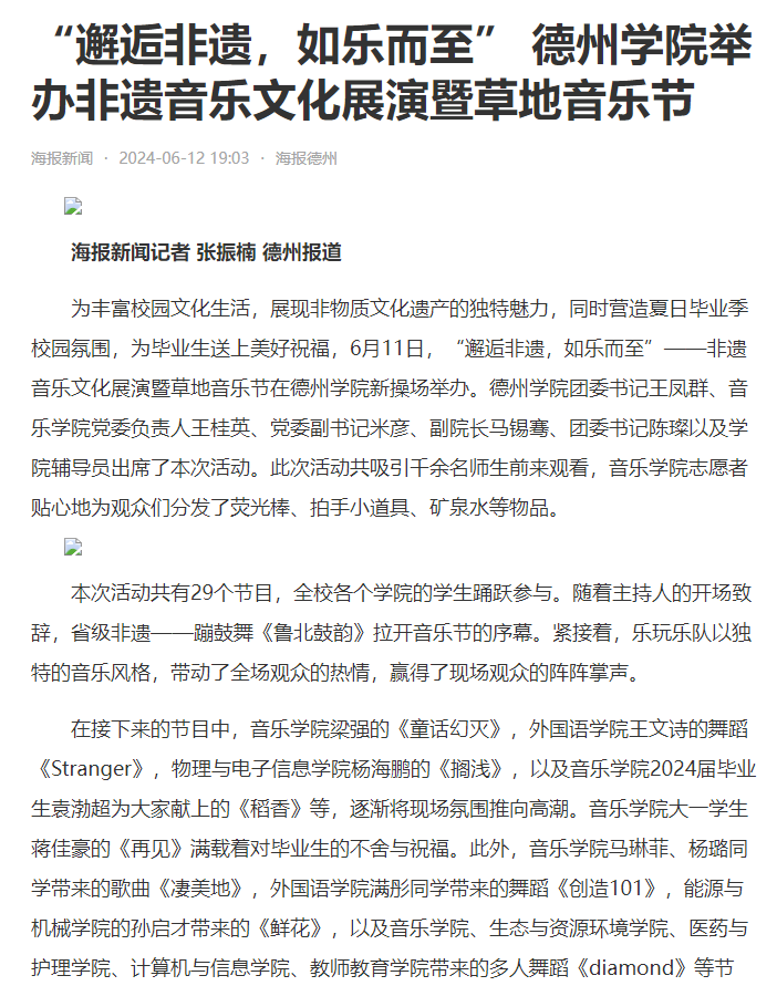 【海报新闻】“邂逅非遗,如乐而至” 德州学院举办非遗音乐文化展演暨草地音乐节