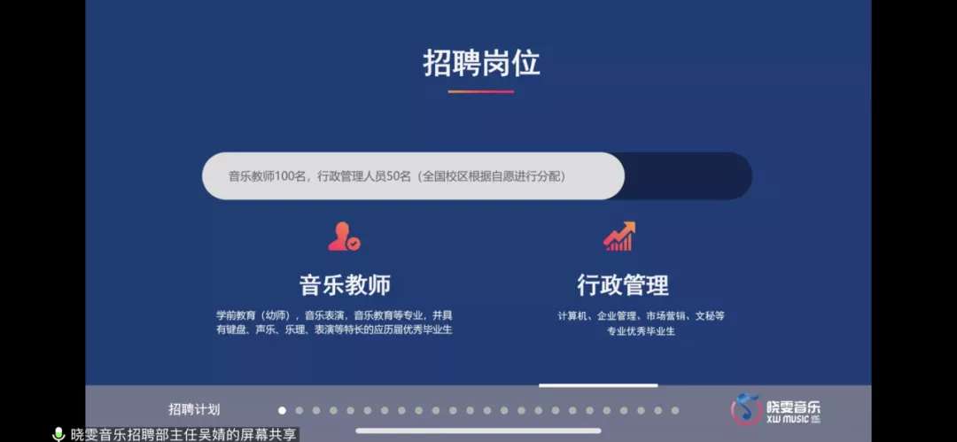 5月22日晚,久久久久久九九99精品大邀请晓雯音乐教育开展线上专场招聘,依托腾讯会议举办了一场生动的空中宣讲会。久久久久久九九99精品大党总支副书记贺昱、晓雯音乐全国招聘负责人吴婧主任及百余名2020届毕业生参加此次宣讲会。