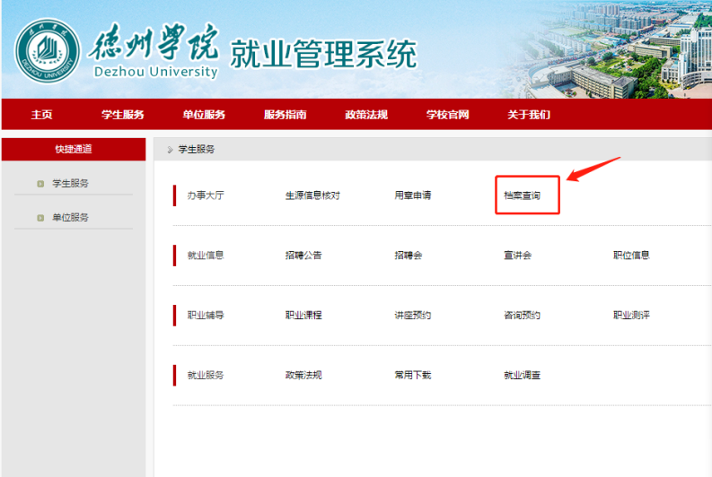 1.登录德州学院就业管理系统。请点击“学生服务”