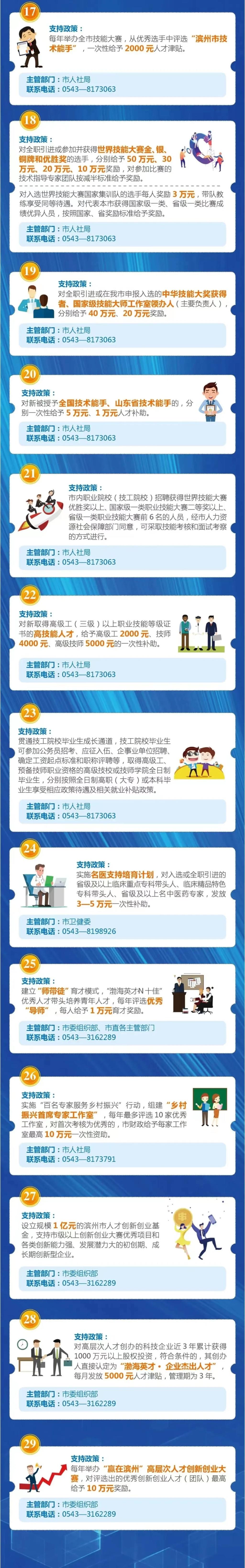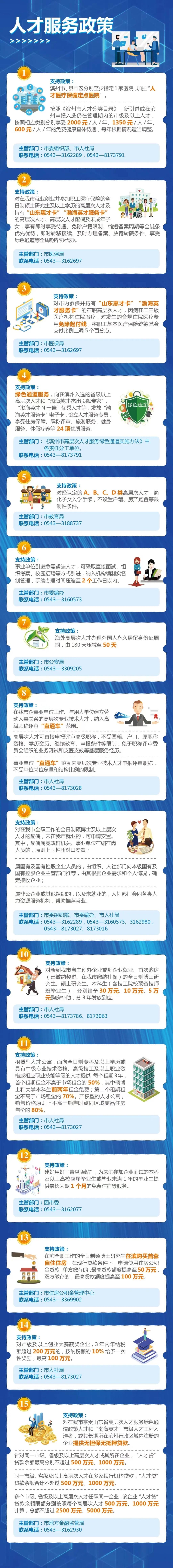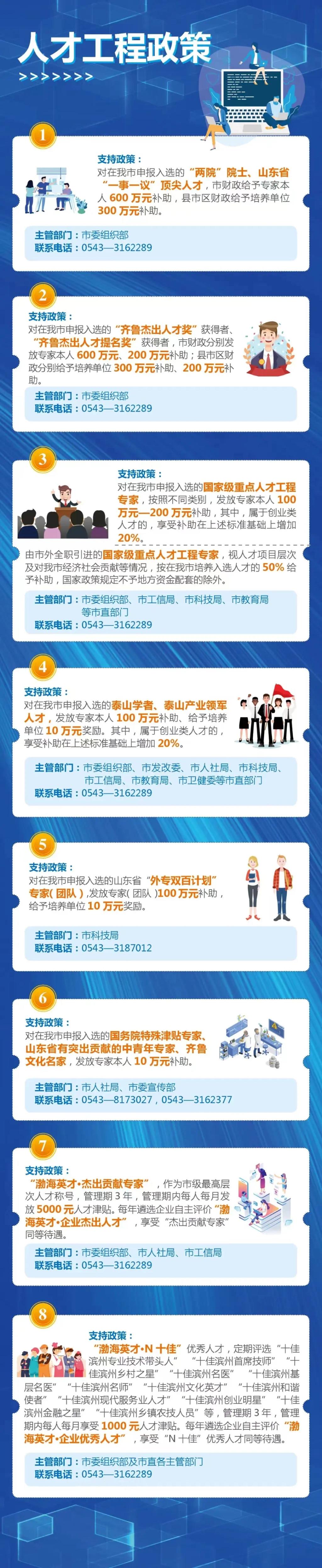 为精准推送人才政策,进一步提高政策知晓度,助力青年发展友好型城市创建,让广大人才和用人单位更简明、更系统地了解和申报,推进政策落实落地,市委人才工作领导小组办公室对近年来滨州市出台的人才政策进行了全面梳理,并将新出台的“滨州市人才新政27条”纳入,形成最新的《滨州市人才政策词典》,共包括人才工程、引进培养、平台载体、人才服务、支持用人单位发展等5个方面、80条干货,现予以发布。