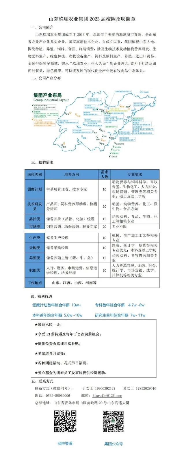 青鸟计划•就业服务季|山东玖瑞农业集团2023届校园招聘简章
