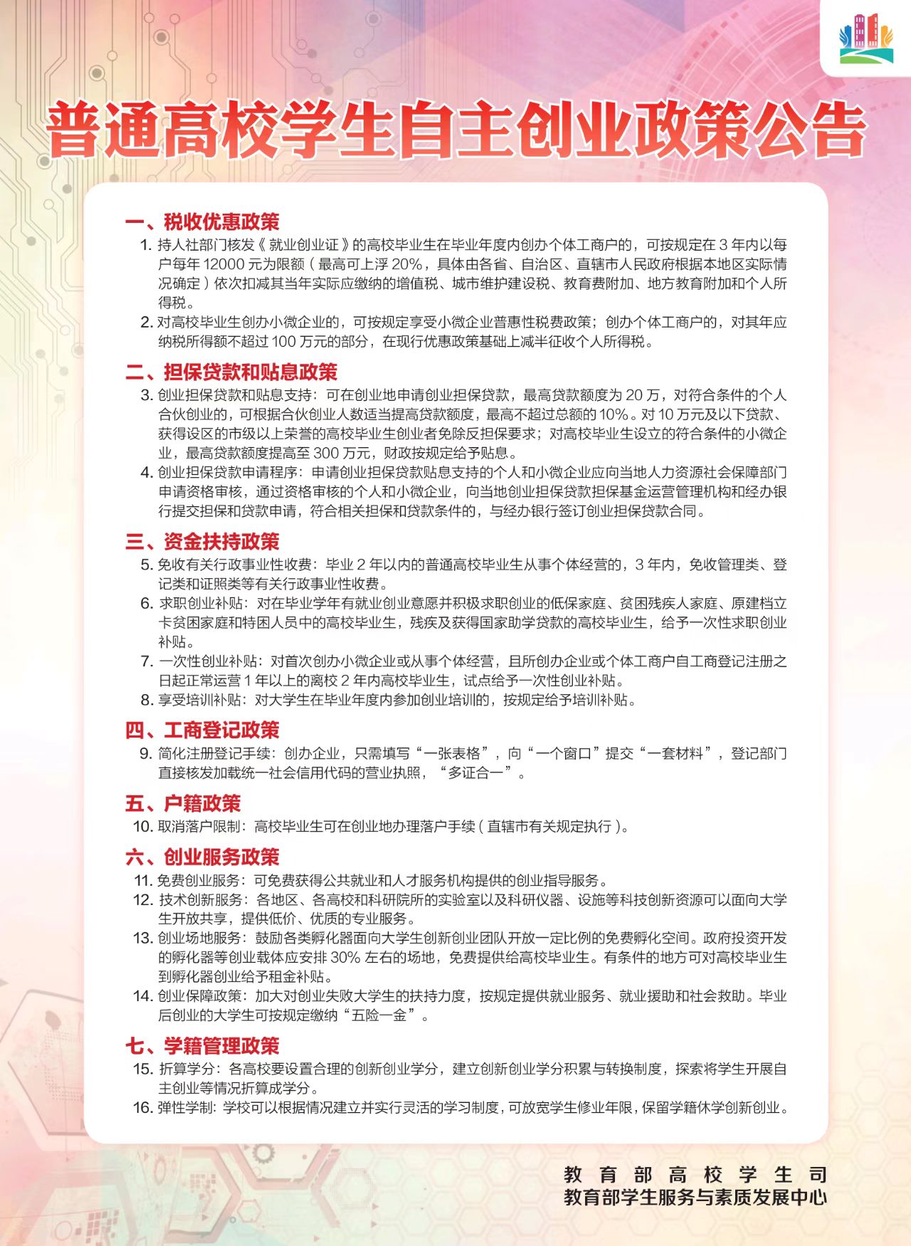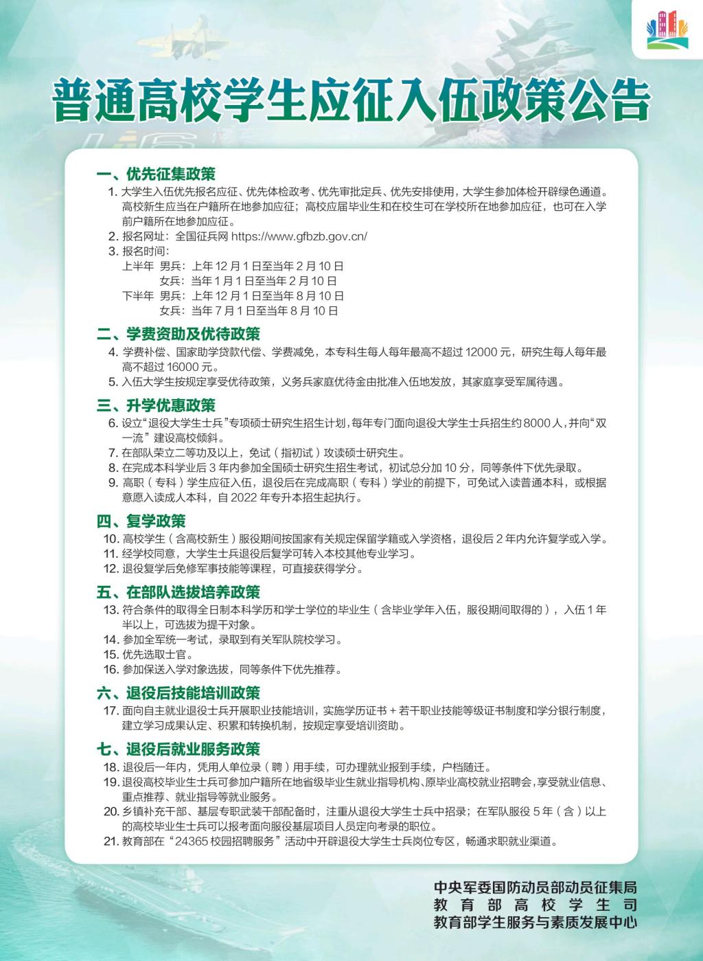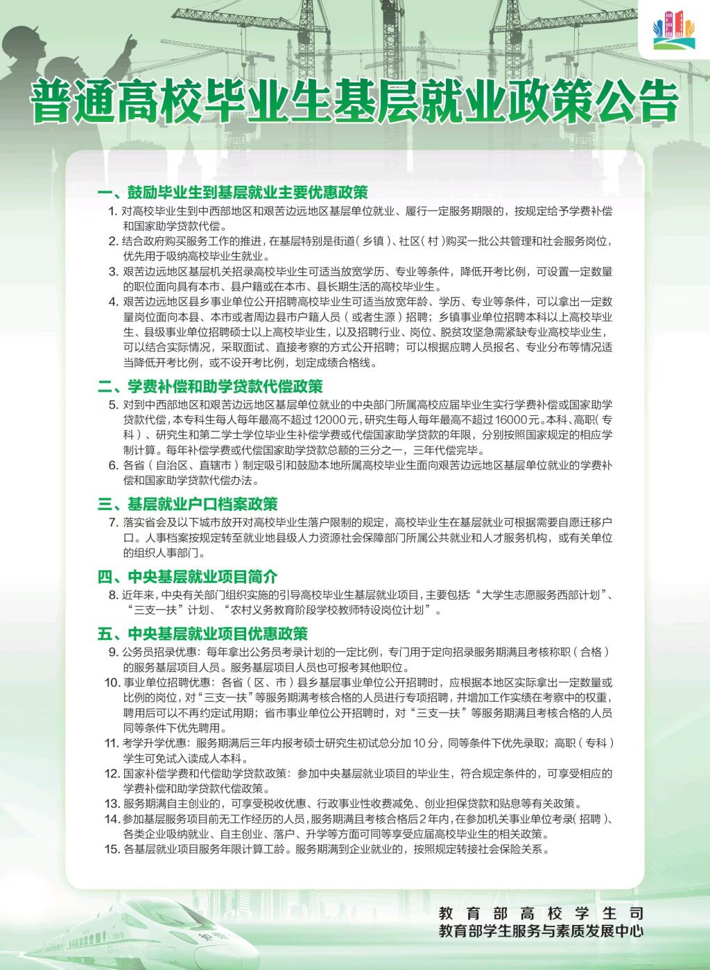 普通高校就业政策公告
